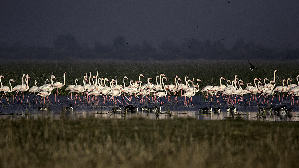 In LRK, the emptiness itself was breathtaking. Once part of the Arabian Sea, this surreal expanse of cracked earth and shimmering salt flats stretched endlessly, interrupted only by islands of life where wildlife congregates. It was here, in this seemingly barren world, that I witnessed an aerial ballet of raptors. Steppe and Imperial Eagles, Pallid and Montagu’s Harriers, and Peregrine Falcons soared above the desert, scanning the ground for prey. The silence of the salt desert was broken only by the sudden swoop of a falcon or the haunting call of a Short-eared Owl. Each sighting felt like a revelation, a reminder that even the harshest landscapes pulse with life. And how you can forget the ballet of Flamingos on the water.